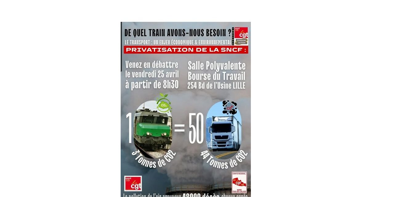 Privatisation de la SNCF, L’Union Départementale des syndicats CGT du Nord, INDECOSA-CGT Nord et le Comité régional CGT Nord pas de calais vous invitent à en débattre..